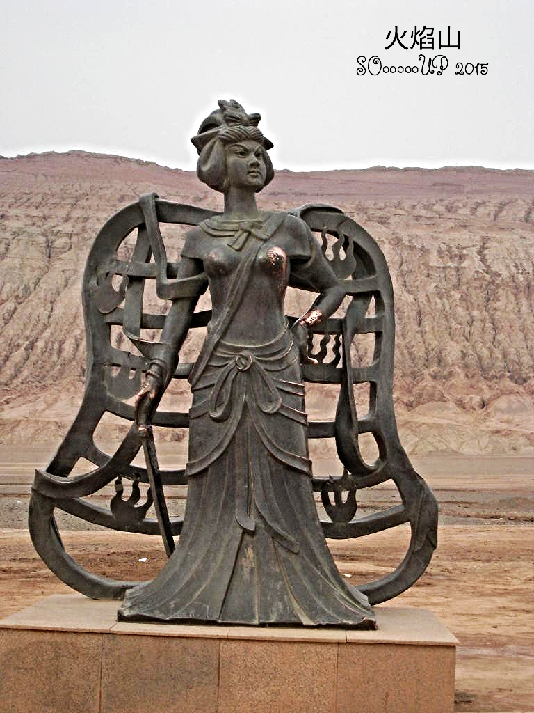 Flaming Mountain museum with a big thermometer, with a degree of 45C on that day of visit
